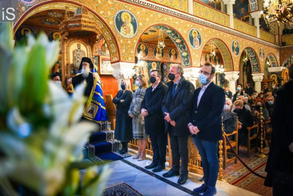 Στην υποδοχή και παρέστησαν η Υφυπουργός Παιδείας κ. Ζέττα Μακρή, οι Βουλευτές κ.κ. Χρήστος Μπουκώρος, Κώστας Μαραβέγιας, Αθανάσιος Λιούπης, ο Δήμαρχος Βόλου κ. Αχιλλέας Μπέος, η Αντιπεριφερειάρχης Μαγνησίας κ. Δωροθέα Κολυνδρίνη, ο Ταξίαρχος Δημήτρης Δρόσος Διοικητής 32 ΤΑΞ Π/Ν, εκπρόσωποι των Μικρασιατικών Σωματείων της Ν. Ιωνίας και πλήθος ευλαβούς λαού.