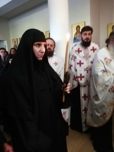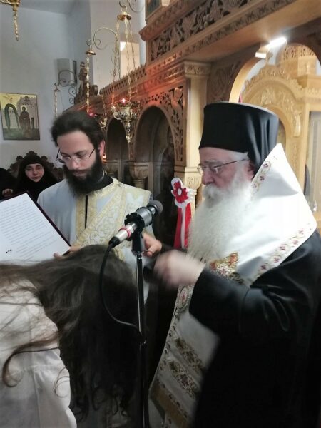 Τέλος, ο Σεβασμιώτατος ευχαρίστησε όλους όσοι στηρίζουν ποικιλοτρόπως το Μοναστήρι και ευχήθηκε στην νέα Μοναχή να αξιωθεί να λάβει και την χαρά του Μεγάλου και Αγγελικού Σχήματος.