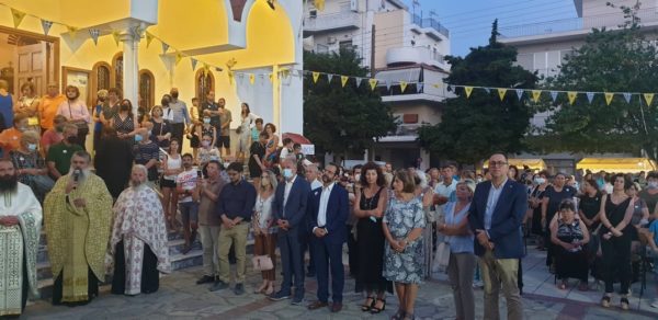 Στον Μέγα Πανηγυρικό Εσπερινό χοροστάτησε ο Σεβ. Μητροπολίτης Δημητριάδος κ. Ιγνάτιος, τον οποίο πλαισίωσε πληθύς Κληρικών της τοπικής Εκκλησίας, παρουσία των Βουλευτών Μαγνησίας Κωνσταντίνου Μαραβέγια και Αθανασίου Λιούπη και πλήθους φιλαγίων πιστών.