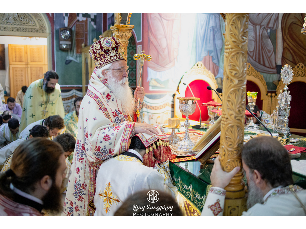 Στο τέλος της Θείας Λειτουργίας, ο Σεβασμιώτατος τέλεσε επιμνημόσυνη δέηση για τις ψυχές των θυμάτων της Μικρασιατικής Καταστροφής και των προσφύγων προγόνων μας.