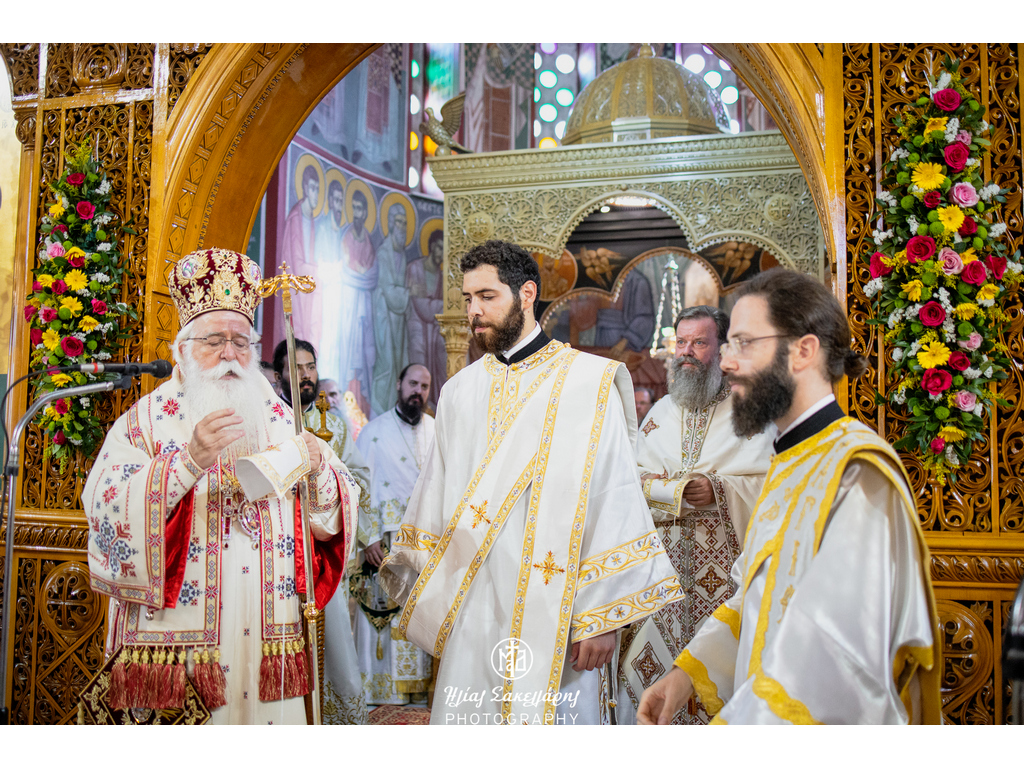 Ο Σεβασμιώτατος μνημόνευσε ιδιαιτέρως τον Μακαριστό π. Αντώνιο Ζούπη, πρώτο Πνευματικό του νέου Διακόνου, ο οποίος τον γαλούχησε πνευματικώς και έσπειρε μέσα του τον πόθο της αφιερώσεως στην Εκκλησία. Εξήρε, μάλιστα, την ανάγκη όλων για διαρκή πνευματική καθοδήγηση. Ακολούθως, ο Ποιμενάρχης μας αναφέρθηκε στην Χάρη του Αγίου Πνεύματος, «που θα σε εμπλουτίσει, θα σε στηρίξει, θα σου δώσει δύναμη να υπερβαίνεις κάθε δυσκολία και να μη φοβάσαι, πλέον. Αυτό θα σου δώσει το πνεύμα της διακονίας, που ο Χριστός ζητά από όλους μας… Είμαστε μια ζωντανή Εκκλησία, όχι αναμάρτητων, αλλά αγωνιστών, που αγωνιζόμαστε να δώσουμε την μαρτυρία του Χριστού στον σύγχρονο κόσμο, πορευόμενοι, συχνά, μία πορεία σταυρώσιμη, έχοντας, όμως, ως προοπτική την Ανάσταση. Κι αν περνάμε δυσκολίες κι αν έρχονται πλημμύρες, ξέρουμε ότι η ελπίδα μας είναι ο Χριστός μας, που φέρουμε στις καρδιές των ανθρώπων. Αυτός που θα είναι η Ανάσταση και του τόπου μας και του λαού μας».