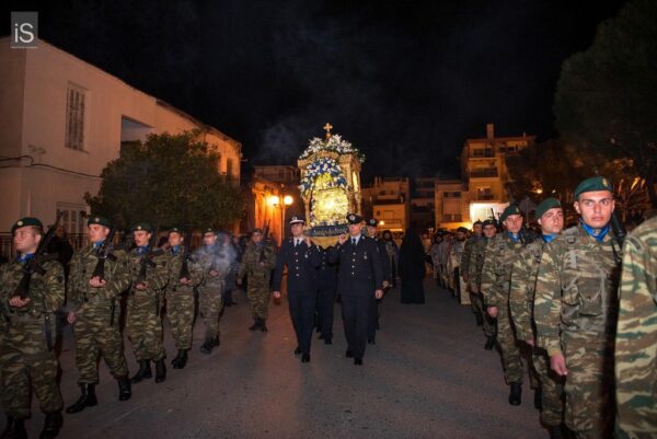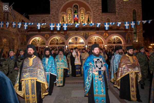 Ακολούθησε η λιτάνευση της Ιεράς Εικόνος της Ευαγγελιστρίας στους δρόμους της Ν. Ιωνίας, υπό τους ήχους της Φιλαρμονικής του Δήμου Βόλου.