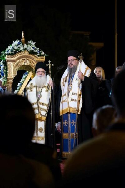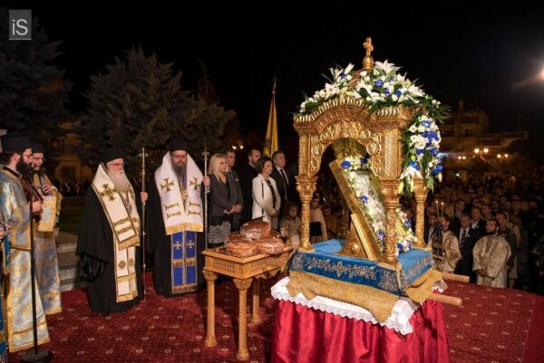 Στον Μέγα Εσπερινό χοροστάτησε ο Σεβ. Μητροπολίτης Λαρίσης & Τυρνάβου κ. Ιερώνυμος, συγχοροστατούντος του Σεβ. Ποιμενάρχου Δημητριάδος και Αλμυρού, κ. Ιγνατίου. Παρέστησαν η Υφυπουργός Εσωτερικών, Δημόσιας Διοίκησης και Αποκέντρωσης Μαρίνα Χρυσοβελώνη, ο Περιφερειάρχης Θεσσαλίας Κώστας Αγοραστός, η Αντιπεριφερειάρχης Μαγνησίας Δωροθέα Κολυνδρίνη, οι Βουλευτές Μαγνησίας Αλέξανδρος Μεϊκόπουλος, Συμεών Μπαλής και Παναγιώτης Ηλιόπουλος, ο Δήμαρχος Βόλου Αχιλλέας Μπέος, οι επικεφαλής των Στρατιωτικών, Λιμενικών, Αστυνομικών και Πυροσβεστικών Αρχών και μέγα πλήθος πιστών, που κατέκλυσαν τον εμβληματικό προσφυγικό Ναό της Ν. Ιωνίας.