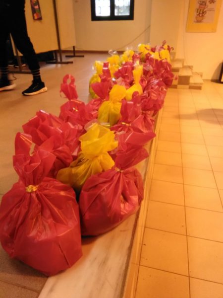 Στο τέλος των εκδηλώσεων, διανεμήθηκαν σ’ όλους τους κρατούμενους τα χριστουγεννιάτικα ατομικά δέματα που ετοίμασε ο Σ.Σ.Κ. Βόλου ο “ΕΣΤΑΥΡΩΜΕΝΟΣ” και οι συνεργάτες του.