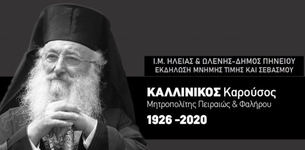 Με τη συμπλήρωση τριών ετών από την εκδημία του μακαριστού Μητροπολίτη πρ. Πειραιώς κυρού Καλλινίκου, η Ιερά Μητρόπολη Ηλείας και Ωλένης και ο Δήμος Πηνειού-Ν.Π. Πολιτισμού, διοργανώνουν σχετικές εκδηλώσεις, που θα πραγματοποιηθούν ως εξής: