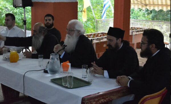 Ο Σεβασμιώτατος στη σύντομη παραμονή του στην κατασκήνωση ενημερώθηκε για το πρόγραμμα, τα ονόματα των ομάδων και άλλα θέματα.