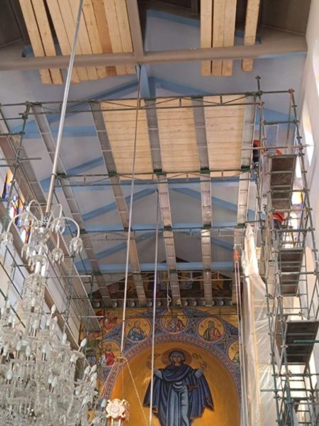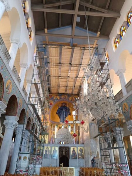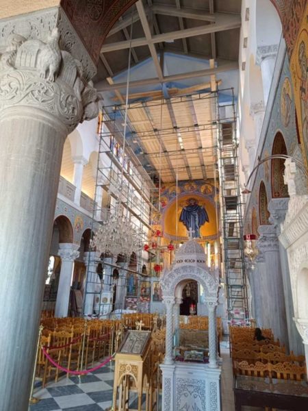 Ακόμη, αναφέρθηκε στις αγιογραφικές εργασίες που βρίσκονται σε εξέλιξη, με τη χρήση της τεχνικής του ψηφιδωτού, υπογραμμίζοντας ότι «πρέπει να θεραπεύουμε και να διατηρούμε τους ναούς όσο περνούν τα χρόνια. Είναι η πολιτιστική και πνευματική μας κληρονομιά».