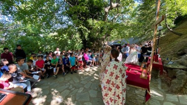 Κάτω από τον ίσκιο των πλατάνων στην κατασκήνωση της Τοπικής Εκκλησίας στον Άγιο Λαυρέντιο Πηλίου, λειτούργησε την ο Μητροπολίτης Δημητριάδος κ. Ιγνάτιος, την τελευταία ημέρα της πρώτης φετινής κατασκηνωτικής περιόδου, στην οποία φιλοξενήθηκαν αγόρια του Δημοτικού, με υπεύθυνο τον κ. Νικόλαο Κεσκίνη και πνευματικό σύμβουλο τον Αρχιμ. Καλλίνικο Γεωργακόπουλο.