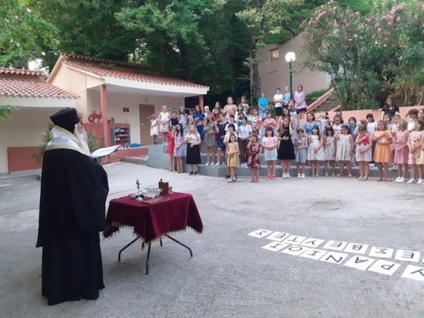 Το απόγευμα ο Σεβασμιώτατος τέλεσε τον Αγιασμό της 2ης κατασκηνωτικής περιόδου, στην οποία φιλοξενούνται κορίτσια του Δημοτικού, με υπεύθυνους τον Πρωτ. Βασίλειο Αδάμ και την Πρεσβυτέρα του Λαμπρινή Λουλουδάκη.