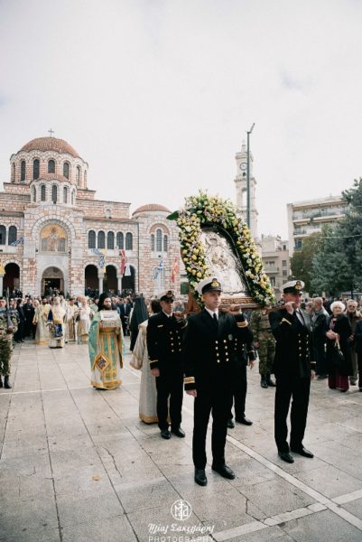 Ακολούθησε η λιτάνευση της Ιεράς Εικόνος και του Ιερού Λειψάνου του Αγίου Νικολάου στους δρόμους της πόλης, με κατεύθυνση της παραλία, υπό τους ήχους της περίφημης φιλαρμονικής του Δήμου Βόλου, συνοδεία στρατιωτικού αγήματος και αντιπροσωπίας του συνόλου των παραδοσιακών χορών της Ιεράς Μας Μητροπόλεως, με τις παραδοσιακές φορεσιές του.