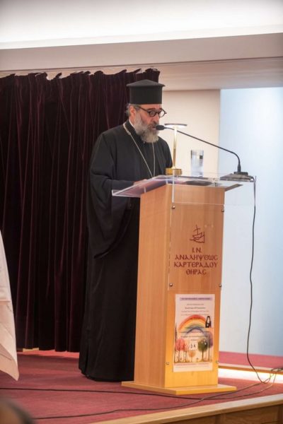 Ο Σεβασμιώτατος έτυχε πολύ θερμής υποδοχής από τον Σεβασμιώτατο Μητροπολίτη κ. Αμφιλόχιο και τον υπεύθυνο του Ενοριακού Παιδικού Σταθμού Αρχιμανδρίτη Χριστοφόρο Καραμαλέγκο και από το εκλεκτό του ακροατήριο.