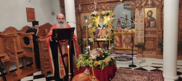 Στην Απόλυση, ο Σεβασμιώτατος αφιέρωσε την Θεία Λειτουργία της εορτής του στους ιατρούς, νοσηλευτές, που διακονούν στα νοσηλευτικά ιδρύματα της πατρίδας μας και στους νοσούντες από την πανδημία, ιδίως, όμως, σε όσους εργάζονται και μάχονται στο Νοσοκομείο του Βόλου.