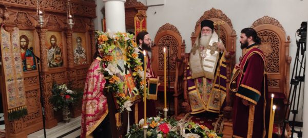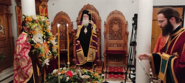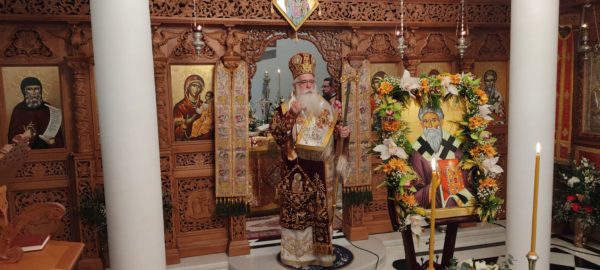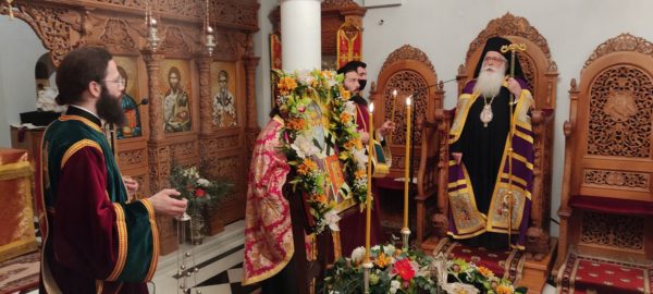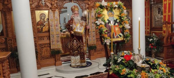 Ανήμερα της εορτής τελέστηκε η Αρχιερατική Θεία Λειτουργία, στην οποία τον Σεβασμιώτατο πλαισίωσαν, εκ μέρους του Ιερού Κλήρου, ο Πρωτοσύγκελλος Αρχιμ. Δαμασκηνός Κιαμέτης, ο οποίος κήρυξε και τον Θείο Λόγο και ο Γενικός Αρχιερατικός Επίτροπος. Το Ιεροψαλτικό αναλόγιο στελέχωσαν οι εκ των καλλιφωνοτέρων Κληρικών της Μητροπόλεως Αρχιμανδρίτες Σεραφείμ Κοντακτσής και Καλλίνικος Γεωργακόπουλος, οι οποίοι απέδωσαν αρτίως και σεμνοπρεπώς τους ύμνους της εορτής και της Θείας Λειτουργίας.