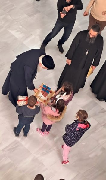 Τα παιδιά έψαλαν στον Σεβασμιώτατο τα κάλαντα των Χριστουγέννων και άλλους εόρτιους ύμνους και έλαβαν από τον Ποιμενάρχη μας τις πατρικές του ευχές και Χριστουγεννιάτικες ευλογίες.