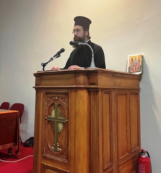 Στον σύντομο χαιρετισμό του ο Σεβασμιώτατος εξήρε το έργο του π. Αμφιλοχίου, χαρακτηρίζοντάς τον «πολύτιμο στον πυρήνα του διαλόγου της Ορθοδοξίας». Ο Σεβ. Ποιμενάρχης μας υπογράμμισε δε την ανάγκη για ενότητα και συνέχιση της Πατερικής Παράδοσης, σημειώνοντας πως «το Άγιο Πνεύμα συνεχίζει να λειτουργεί στην Εκκλησία και σήμερα». Συνεχίζοντας, έκανε ειδική αναφορά στην αξία της ενότητας της Εκκλησίας, τόσο σε τοπικό όσο και σε παγκόσμιο επίπεδο, και κάλεσε τους παρευρισκόμενους να προσευχηθούν για την αντιμετώπιση των προκλήσεων της εποχής μας. Όπως τόνισε χαρακτηριστικά, «η ταυτότητά μας είναι συνυφασμένη με την Ορθοδοξία, που αποτελεί το ζωντανό συνδετικό μας κρίκο». Τέλος, προέτρεψε τους παρισταμένους να στηρίξουν την ελληνική οικογένεια, ευχόμενος οι Τρεις Ιεράρχες να εμπνέουν πάντοτε με το πνεύμα τους όλους όσοι υπηρετούν την Παιδεία και την Εκκλησία.