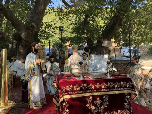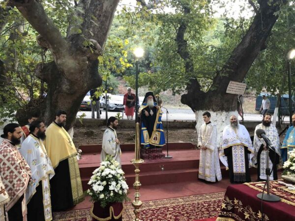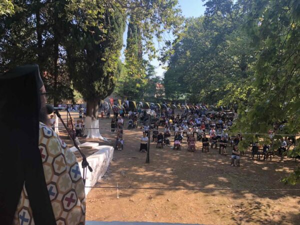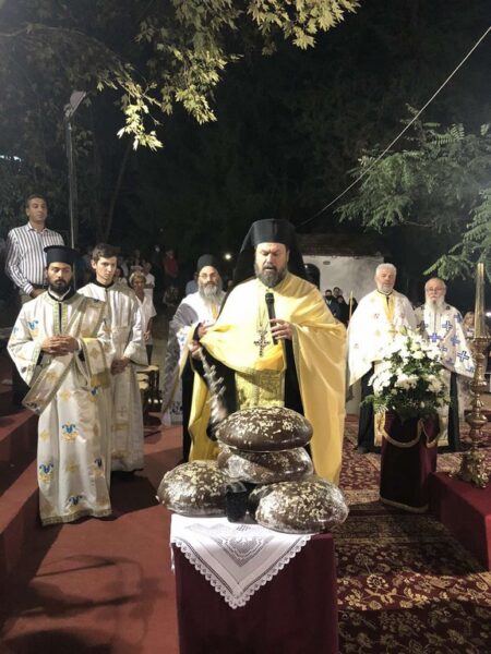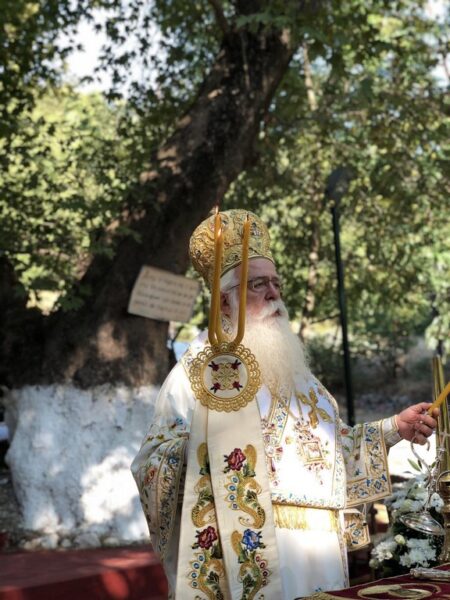 Στο κήρυγμά του, ο Σεβασμιώτατος τόνισε ότι «καλούμαστε να ξαναζήσουμε την χαρά της Κοιμήσεως και της Μετάστασής Της, που είναι καρπός της Ανάστασης του Κυρίου. Ουδείς μπορεί να μας στερήσει αυτή την χαρά και μάλιστα, τούτο τον καιρό, που την έχουμε τόση ανάγκη. Στον καιρό της θλίψης και της δοκιμασίας, έχουμε ανάγκη την κοινωνία μαζί Της. Τούτη την ημέρα, που όλοι αγωνιούμε για το τί μας περιμένει, ενώνουμε την προσευχή μας και απευθυνόμαστε σ’ Αυτήν. Την παρακαλούμε να μας αξιώσει να γίνουμε μιμητές Της στην ταπείνωση και στην υπακοή στο θέλημα του Θεού… Την παρακαλούμε να προστατεύσει τους απλούς ανθρώπους, που βιώνουν ανυπέρβλητα προβλήματα… Την παρακαλούμε να μεσιτεύσει στον Θεό, για να ενισχύσει τους σοφούς και επιστήμονες της εποχής μας, που καλούνται να διακονήσουν την ανθρωπότητα, στον καιρό της μεγάλης δοκιμασίας, και να κατανοήσουν πόση ανάγκη έχουν από το έλεος και τον φωτισμό του Θεού, για να επιτύχουν στο έργο τους… Την παρακαλούμε να μεσιτεύσει, ώστε τα παιδιά μας να ενταχθούν, εν ασφαλεία, στην σχολική ζωή, ενόψει της νέας χρονιάς, χωρίς να στερηθούν την χαρά της μάθησης… Την παρακαλούμε να στηρίξει τις οικογένειες σε κρίση, που σείονται τα θεμέλιά τους, που αμφισβητείται η ουσία τους… Την παρακαλούμε να στηρίξει και να παρηγορήσει εκείνους που πονούν, που υφίστανται τις επιπτώσεις της πανδημίας, διδάσκοντας υπακοή και υπομονή στην δοκιμασία του πόνου… Την παρακαλούμε να προστατεύει τους Μοναχούς και τις Μοναχές μας, των οποίων είναι το πρότυπο. Μάλιστα, να προστατεύσει και αυτό το Μοναστήρι, που δέχθηκε την τραγική εμπειρία του σεισμού. Να, όμως, που με την δική Της χάρη και προστασία και τις προσπάθειες της Αδελφότητας και των απλών ανθρώπων, ανασταίνεται και αποκαθίσταται στην παλαιά του δόξα, γεγονός που αποτελεί θαύμα στη εποχή της κρίσης…».