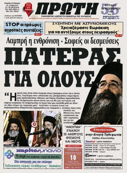 Πριν 23 χρόνια: Η Ενθρόνιση του Μητροπολίτου Δημητριάδος (ΒΙΝΤΕΟ)