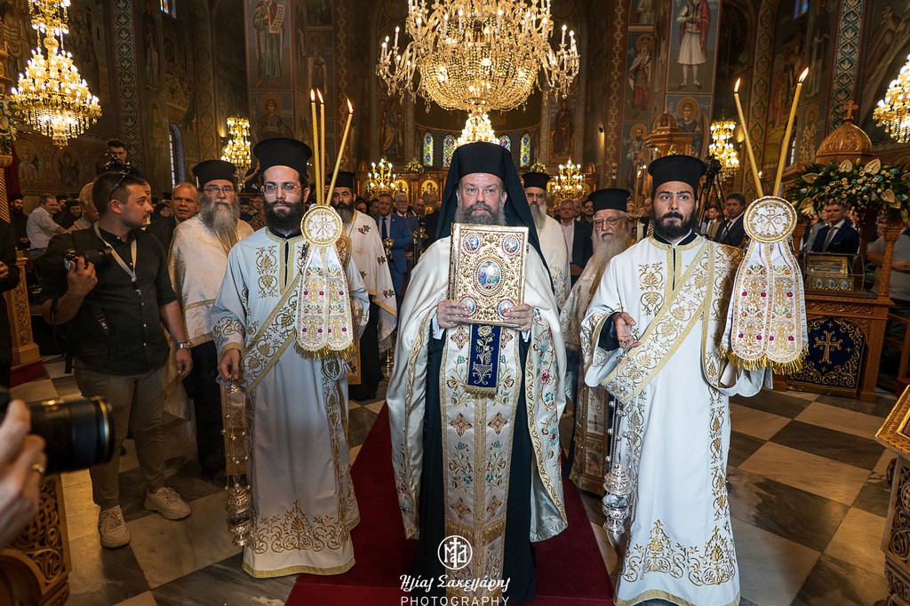 Μάλιστα, τόνισε ότι «θα ήτο μεγίστη παράλειψις να μη υπογραμμισθή η όλη εκκλησιολογική και θεολογική παρουσία του αδελφού Ιγνατίου εις την Ιεραρχίαν της Αγιωτάτης Εκκλησίας της Ελλάδος, ως εκλεκτού και πεφωτισμένου συμπαρέδρου, ο οποίος συμβάλλει εις την εκκλησιαστικήν ενότητα, παρεμβαίνων σοφώς και λυσιτελώς διά τα φλέγοντα ζητήματα της Εκκλησίας». Περαίνοντας, τον χαιρετισμό του, ο Παναγιώτατος αναφέρθηκε, με συγκίνηση τον Μακαριστό Ποιμενάρχη της Δημητριάδος, μετέπειτα Αρχιεπίσκοπο Χριστόδουλο, «τον φλογερόν και γνήσιον Ποιμένα, μετά του οποίου συνεδέθημεν αρρήκτως και μετά του οποίου, παρά τας διαφορετικάς απόψεις μας εις ωρισμένα θέματα, η αδελφική αγάπη ουδέποτε εψύγη, δεόμεθα δε, αυτήν την ιεράν στιγμήν, υπέρ αναπαύσεως της μακαρίας αυτού ψυχής εν Χώρα Ζώντων». Προσέφερε δε στον Ιερό Μητροπολιτικό μας Ναό, αργυρή κανδήλα, εις διαρκή Πατριαρχική ευλογία.