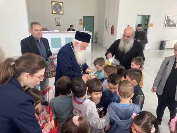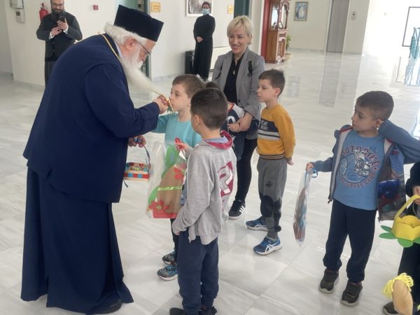 Ο κ. Ιγνάτιος καλωσόρισε πατρικά τα παιδιά και τους εκπαιδευτικούς συνοδούς τους, ευχήθηκε με αγάπη για τις επερχόμενες μεγάλες εορτές και προσέφερε σε όλους εόρτιες ευλογίες και γλυκίσματα.