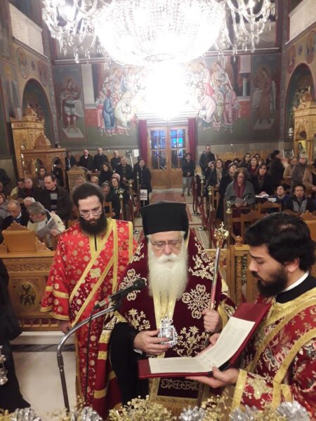 Στο τέλος της Ακολουθίας, ο Σεβασμιώτατος επεσήμανε ότι «η Εκκλησία μάς προετοιμάζει για την μεγάλη εορτή με την ζωντανή Λατρεία Της. Και απόψε πήραμε μια γεύση από την Λατρεία παρελθόντων εποχών, τότε που η συμψαλμωδία ήταν εμπειρία ζωής». Στη συνέχεια ο κ. Ιγνάτιος τόνισε ότι «ο Θεός ομιλεί στους ανθρώπους με τον τρόπο που ο καθένας καταλαβαίνει. Στους Ποιμένες και στον Ιωσήφ έστειλε Αγγέλους, γιατί ήταν Ιουδαίοι και γνώριζαν την διδασκαλία της Γραφής για τους Αγγέλους. Στους σοφούς της Ανατολής μίλησε με τον Αστέρα, ο οποίος τους οδήγησε στον Βασιλέα των Βασιλέων. Το ίδιο συμβαίνει και σε εμάς. Ο Θεός μας ομιλεί στην γλώσσα, σε χρόνο και με τρόπο που καταλαβαίνουμε. Σε κάποιους μέσα από την μήτρα της μητέρας τους. Άλλους τους καλεί στην πορεία της ζωής. Άλλους μέσα από την γνώση, που οδηγεί στην πίστη. Άλλους τους προσεγγίζει μέσα από τον πόνο, άλλους με την ανάγκη της μετανοίας. Γι’ αυτό και η Εκκλησία κάθε χρόνο μας καλεί να γιορτάσουμε Χριστούγεννα και να τα βιώσουμε όχι τυπικά, αλλά ουσιαστικά, με την καρδιά μας ανοικτή στα δώρα του Θεού…».