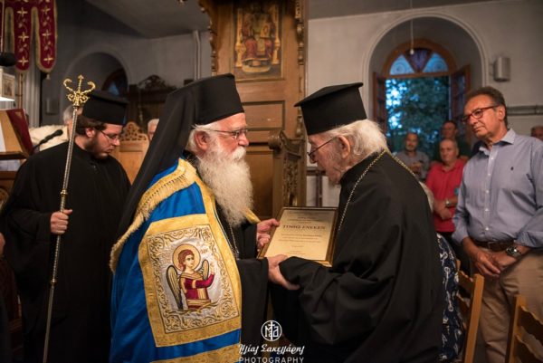 Ακολούθως, ο Ποιμενάρχης απένειμε στον π. Βασίλειο τιμητικό Δίπλωμα, κι εκείνος συγκινημένος ευχαρίστησε για την μεγάλη τιμή τον Σεβασμιώτατο και όλους τους ενορίτες του.