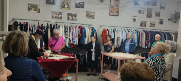 Τη Δευτέρα, 4 Σεπτεμβρίου, το απόγευμα, τελέστηκε αγιασμός στην μεγάλη αίθουσα του Κέντρου Διαχείρισης Ανθρωπιστικής Βοήθειας (ΚΕ.Δ.Α.Β.) με την παρουσία μελών του Δ.Σ., των εθελοντών-συνεργατών του “ΕΣΤΑΥΡΩΜΕΝΟΥ” και όσων εργάστηκαν για την ανακαίνιση: του χώρου υποδοχής, της Γραμματείας και της αίθουσας, όπου πραγματοποιούνται οι εκθέσεις των αναγκαίων ειδών.