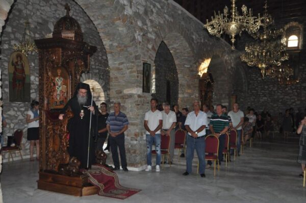 Προηγήθηκε ο Αγιασμός των θυρανοιξίων από τον Σεβασμιώτατο, επειδή όπως είναι γνωστό ο Ναός αυτός για αρκετά χρόνια δεν λειτουργούσε.