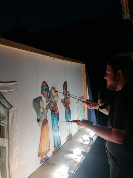 Στη συνέχεια οι φοιτητές παρακολούθησαν, στην αυλή του ναού, παράσταση Καραγκιόζη από το ΘΕΑΤΡΟ ΣΚΙΩΝ ΚΟΥΓΙΟΥΜΤΖΗ με τον Δημήτρη Κουγιουμτζή πίσω από το πανί και βοηθό τη Θεοδώρα Λουκά. Η παράσταση είχε συνοδεία παραδοσιακής ορχήστρας από το συγκρότημα ΚΑΡΑΓΚΙΟΖ-ΜΠΕΡΝΤΕ live.