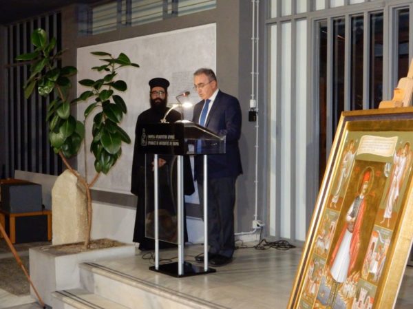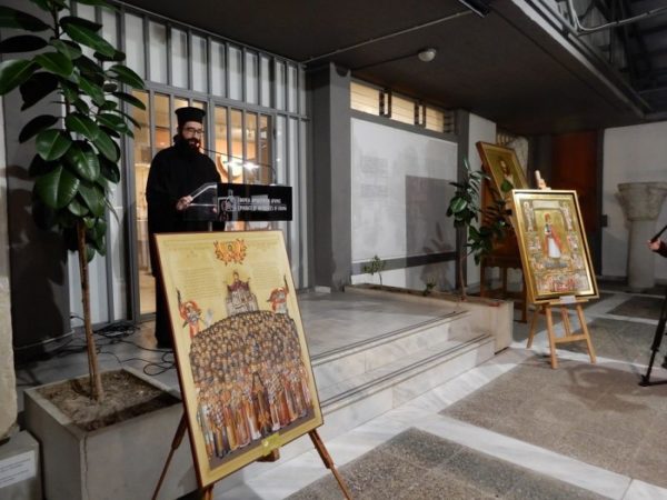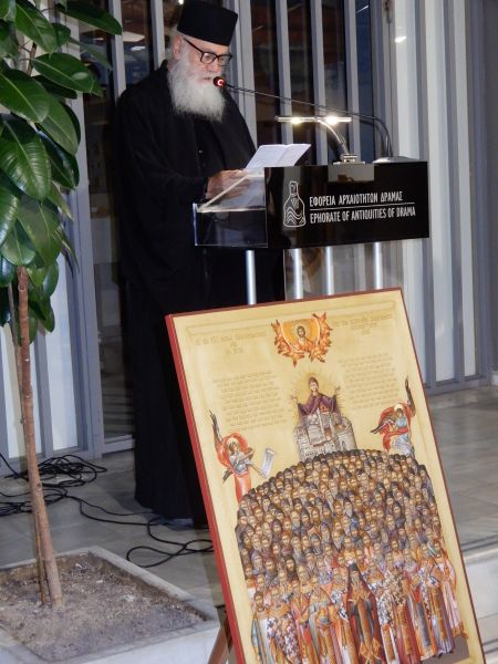 Καλωσορίζοντας το κοινό, ο πατέρας Δημήτριος Αχθοφορίδης, εφημέριος του Ιερού Ναού Αγίων Αναργύρων Δράμας, ανέφερε πως «οι νεομάρτυρες δεν ήταν μόνο αγωνιστές της πίστεώς μας, αλλά αγωνιστές της ελευθερίας, θυσιάζοντας τη ζωή τους για την ελευθερία έκφρασης και των ιδανικών της Ορθοδοξίας».