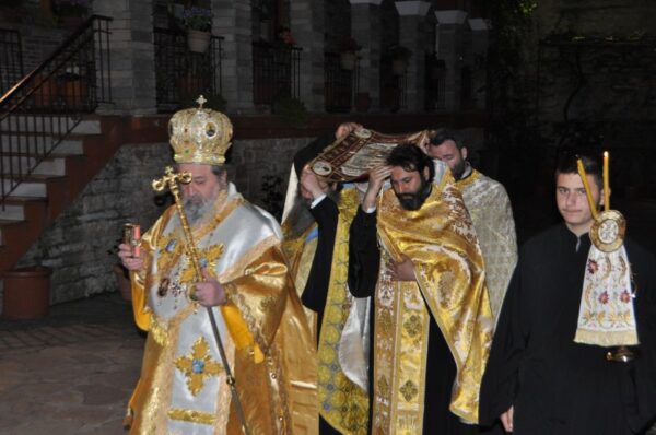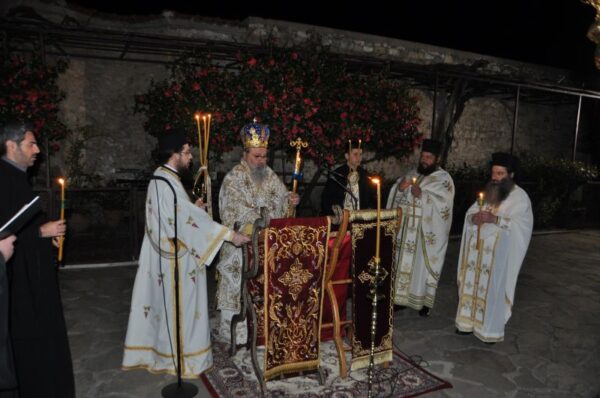 Το Μεγάλο Σάββατο το βράδυ στην Ιερά Μονή Εικοσιφοινίσσης την πανυχίδα της Αναστάσεως και την Αναστάσιμη Θεία Λειτουργία.