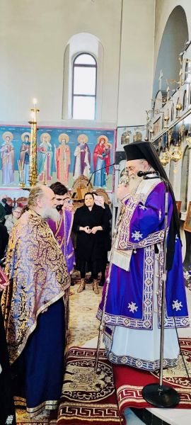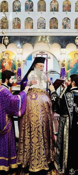 Προ της απολύσεως ο κ. Δωρόθεος χειροθέτησε τον προϊστάμενο του ιερού Ναού πρωτοπρεσβύτερο π. Δημήτριο Καρρά σε πνευματικό.