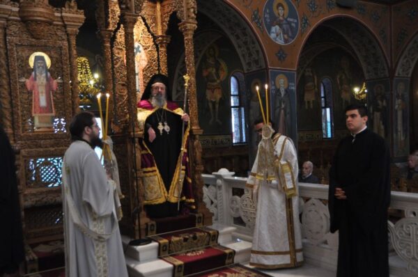 Το πρωί της Δευτέρας του Αγίου Πνεύματος χοροστάτησε στον Όρθρο λειτούργησε και κήρυξε στον εορτάζοντα Ιερό Ναό Αγίας Τριάδος Δράμας.
