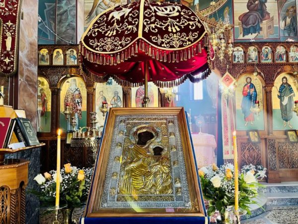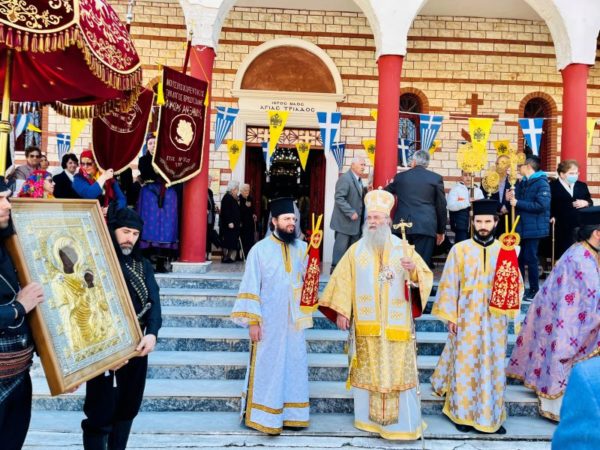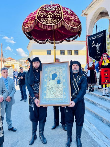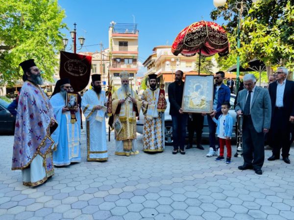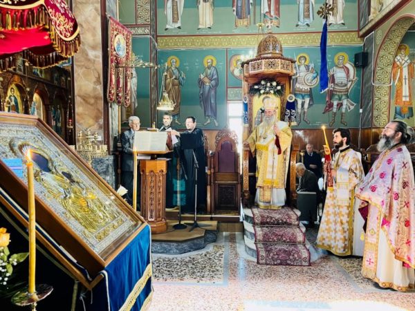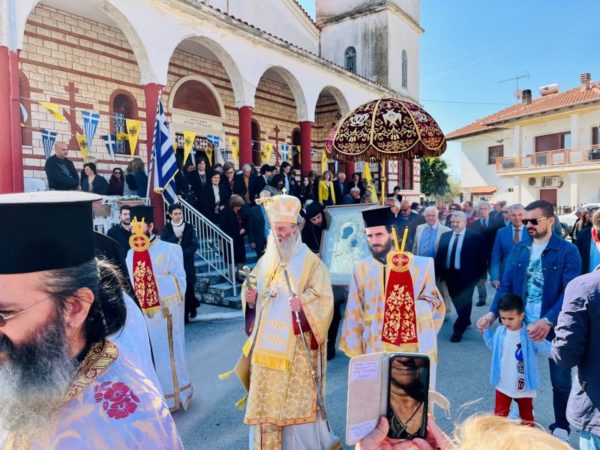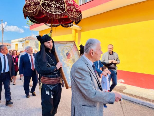 Μετά το πέρας της Θείας Λειτουργίας πραγματοποιήθηκε λιτάνευση της Ιεράς Εικόνος μέσα στην κωμόπολη προς Αγιασμό του τόπου.