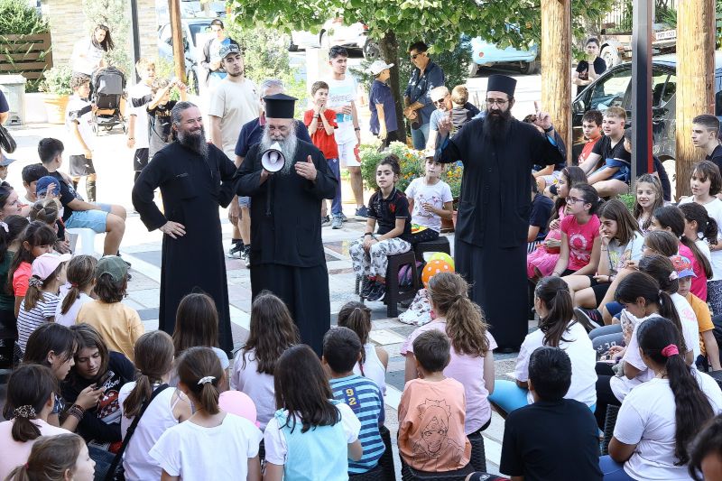 Στον προαύλιο χώρο του Ιερού Ναού Αγίου Χρυσοστόμου Δράμας περισσότεροι από 170 μαθητές και μαθήτριες Δημοτικού, Γυμνασίου και Λυκείου είχαν την ευκαιρία να περάσουν μία κατασκηνωτική μέρα με προσευχή, κατήχηση, παιχνίδια, βιωματικές δράσεις, κατασκευές, εκκλησιαστική αγωγή και κοινό γεύμα.