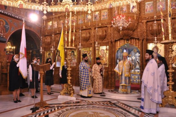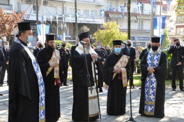 Στο τέλος της Θείας Λειτουργίας εψάλη ευχαριστήριος Δοξολογία για την απελευθέρωση του Έθνους μας. Στη συνέχεια ο Σεβασμιώτατος τέλεσε τρισάγιο για τους αγωνιστές του ’40, στη πλατεία Ελευθερίας.