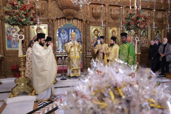 Στο τέλος, εψάλη δοξολογία για την έναρξη του νέου έτους και ο Σεβασμιώτατος ευλόγησε τη Βασιλόπιτα της Μητρόπολης.