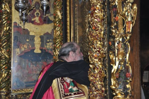 Μετά το πέρας της Θείας Λειτουργίας, ευχαρίστησε όλους όσους εόρτασαν μαζί του και δέχθηκε τις εγκάρδιες ευχές των πιστών παρακαλώντας τους να εύχονται μαζί του στη Παναγία την Εικοσιφοίνισσα να τον διατηρεί έντιμον και ορθοτομούντα τον λόγο της αληθείας.