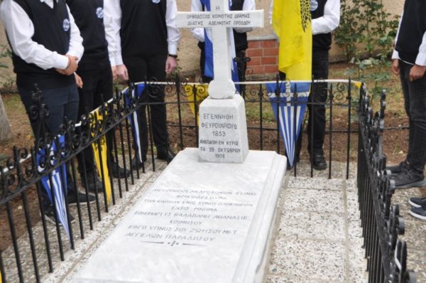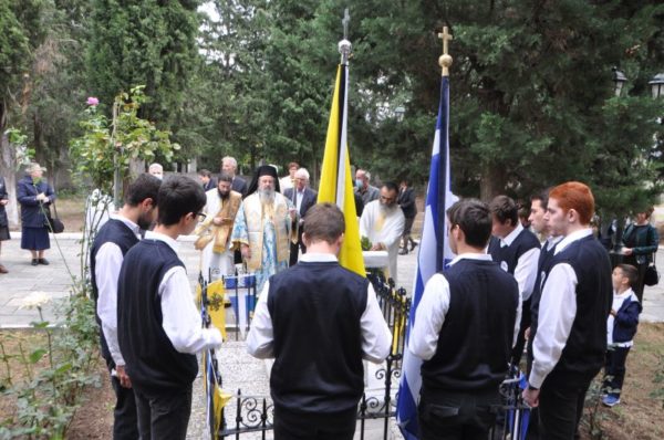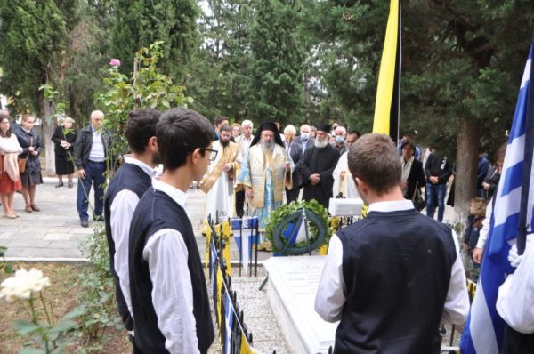 Ακολούθησε Τρισάγιο στον τάφο του εθνομάρτυρα και κατάθεση στεφάνου από τον Σεβασμιώτατο Μητροπολίτη Δράμας.