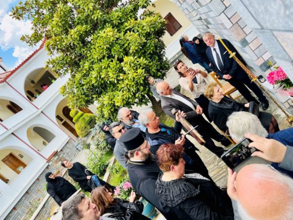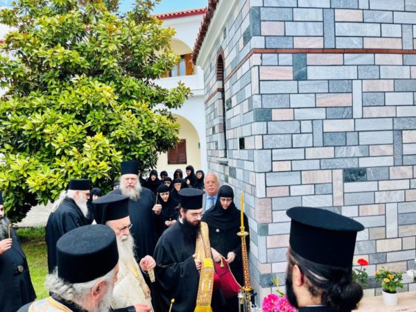 Οἱ μοναχές τόν Ἐπόπτη τῆς μοναχικῆς εὐθυπορίας, τόν κοιμώμενο πλέον στό Μοναστήρι τῆς Ἀναλήψεως Σίψας.
