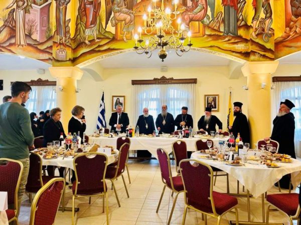 Τέλος, στην Αίθουσα του Συσσιτίου της Ιεράς Μητροπόλεως Δράμας, το οποίο επαναλειτουργεί από την προσεχή Τρίτη, 2 Μαίου, παρατέθηκε γεύμα προς τιμήν των συμμετεχόντων.