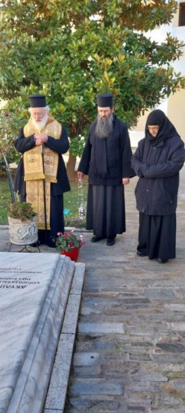 Στην συνέχεια, ο Σεβασμιώτατος κ. Ανδρέας μετέβη στην Ιερά Μονή Αναλήψεως του Σωτήρος Σίψας όπου συναντήθηκε με την Καθηγουμένη Πορφυρία, και τέλεσε τρισάγιο στον εκεί αναπαυόμενο μακαριστό Μητροπολίτη Δράμας κυρό Παύλο και στην μακαριστή Ηγουμένη Ακυλία.