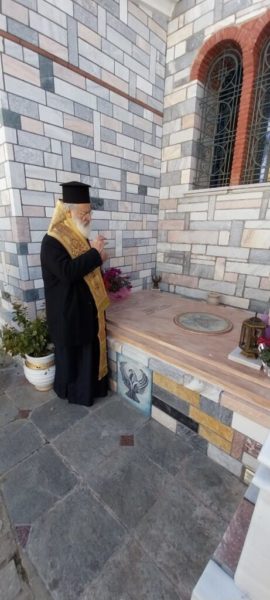 Στην συνέχεια, ο Σεβασμιώτατος κ. Ανδρέας μετέβη στην Ιερά Μονή Αναλήψεως του Σωτήρος Σίψας όπου συναντήθηκε με την Καθηγουμένη Πορφυρία, και τέλεσε τρισάγιο στον εκεί αναπαυόμενο μακαριστό Μητροπολίτη Δράμας κυρό Παύλο και στην μακαριστή Ηγουμένη Ακυλία.