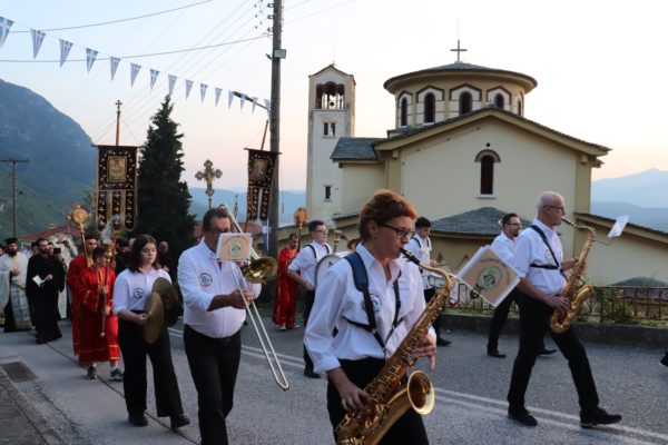 Κατά τη διάρκεια του Εσπερινού λιτανεύθηκε η Εικόνα του Αγίου Παϊσίου από το Ναό ως την πατρική οικία του Αγίου με τη συνοδεία της Φιλαρμονικής του Δήμου Κόνιτσας «Ελευθέριος Χ. Παγγές» με μαέστρο τον Χρήστο Γεωργάνο.