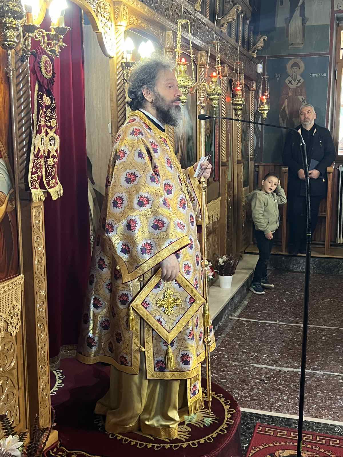 Ο Σεβασμιώτατος έτυχε θερμής και συγκινητικής υποδοχής. Χοροστάτησε στον Κυριακάτικο Όρθρο και προέστη της Αρχιερατικής Θείας Λειτουργίας, συμπαραστατούμενος από τον Γενικό Αρχιερατικό Επίτροπο, Πανοσιολ. Αρχιμ. Νικόλαο Λιόλιο, τον Ιεροκήρυκα της Μητροπόλεως, Πανοσιολ. Αρχιμ. Χερουβείμ Σουτόπουλο, τον Πανοσιολ. Αρχιμ. Ισαάκ Μέμο, τον εφημέριο Παρακαλάμου πρωτοπρ. Διονύσιο Τάτση, τον πρωτοπρ. Νικόλαο Μέμο, τον οικονόμο Μιχαήλ Μπράχο, και συμπροσευχόμενο τον πολιό π. Αδαμάντιο Διαμάντη.
