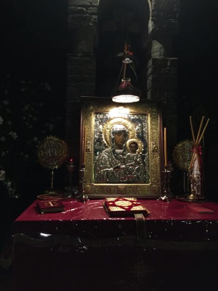 Πλήθος κόσμου από την γύρω περιοχή αλλά και από τη γειτονική χώρα προσήλθε για να προσκυνήσει την ιστορική και Θαυματουργή εικόνα της Παναγίας της Πωγωνιανίτισσας και να παρευρεθεί στη σειρά ιερών ακολουθιών από της 9 το βράδυ μέχρι της 5:30 το πρωί.