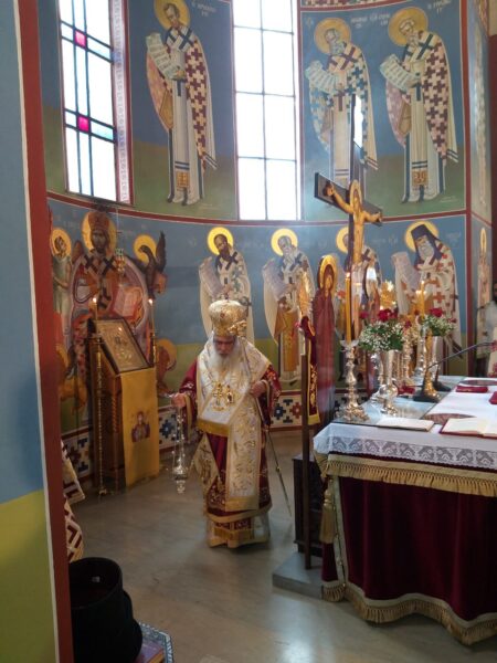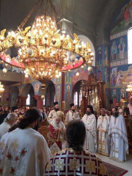Την κυρία ημέρα της εορτής (Πέμπτη 26/9) στον εορτάζοντα ιερό ναό λειτούργησε ο Σεβασμιώτατος Μητροπολίτης Εδέσσης Πέλλης και Αλμωπίας κ. Ιωήλ με την συμμετοχή πολλών κληρικών της περιοχής.