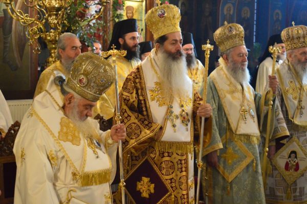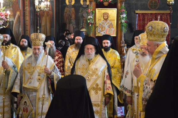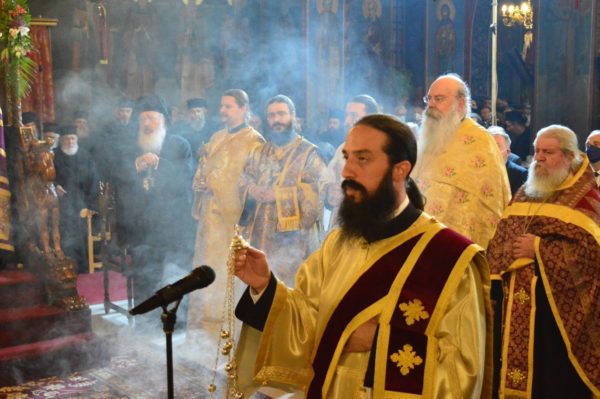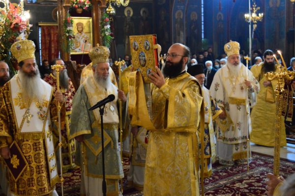 Ο Σεβασμιώτατος προέστη επίσης στο Αρχιερατικό Συλλείτουργο, στο οποίο μετείχαν όλοι οι συγχοροστατήσαντες στον Πανηγυρικό Εσπερινό Σεβασμιώτατοι Αρχιερείς, Κασσανδρείας κ. Νικόδημος, Βρυούλων κ. Παντελεήμων, Μετρών και Αθύρων κ. Δημήτριος, Ναυπάκτου και Αγίου Βλασίου κ. Ιερόθεος, Ύδρας, Σπετσών και Αιγίνης κ. Εφραίμ, Χαλκίδος κ. Χρυσόστομος, Σταγών και Μετεώρων κ. Θεόκλητος, Φθιώτιδος κ. Συμεών, Καστορίας κ. Καλλίνικος και του ποιμενάρχου της Ι. Μητροπόλεως Εδέσσης, Πέλλης και Αλμωπίας κ. Ιωήλ.