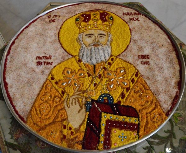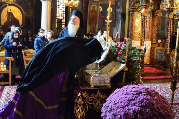 Ακολούθως ο Μητροπολίτης Γέρων Χαλκηδόνος ευλόγησε το κόλλυβο του Αγίου και κήρυξε τον θείο λόγο.