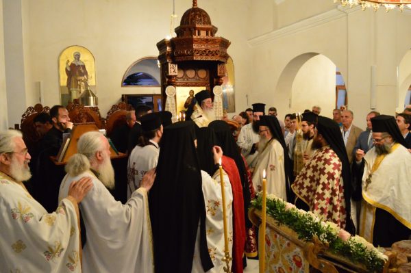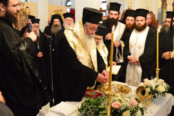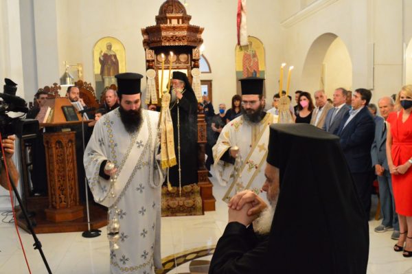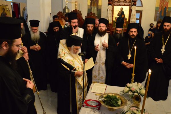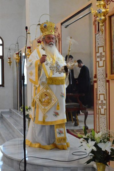 Κατά τον χαιρετισμό του, ο Σεβασμιώτατος αναφέρθηκε στις προσπάθειες του Αγίου Καλλίνικου για την αναγνώριση και την αγιοκατάταξη της Αγίας Βάσσης της Εδεσσαίας αλλά και της Αγίας Χρυσής, ενώ ευχαρίστησε και τους δωρητές του Ιερού Ναού.