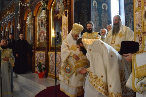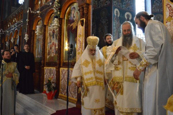 Ο Σεβασμιώτατος Μητροπολίτης Κίτρους, Κατερίνης και Πλαταμώνος κ. Γεώργιος χοροστάτησε στον Όρθρο και προέστη στην Θ. Λειτουργία, ενώ την εις πρεσβύτερον χειροτονία και την χειροθεσία τέλεσε ο οικείος ποιμενάρχης κ. Ιωήλ.
